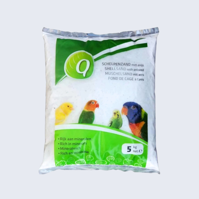 Q‑Schelpenzand met anijs is een zuiver natuurproduct dat zorgt voor een hygiënische en gezonde leefomgeving voor jouw vogels. Het bevat waardevolle vogelmineralen en grit die bijdragen aan een optimale spijsvertering, een evenwichtige groei en een sterke skeletopbouw. Het subtiele anijsaroma zorgt voor een frisse geur en stimuleert vogels om het grit goed op te nemen. Ideaal voor dagelijks gebruik in zowel kooien als volières.
